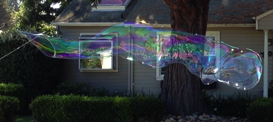 Adjusting the pH can have a dramatic impact on bubble juice. in this image, the film thickness (and resulting colors) are dramatically different after adding some baking powder to lower the pH to 7.4.