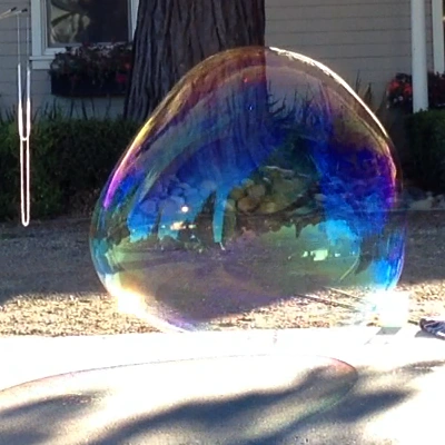 Non-ghost ghost-like apparitions. There are unusual situations in which something like a ghost remains if a bubble completely evaporates while in the air. This occasionally happens on hot dry days. When this happens, the bubble will fade to transparency and lose its gloss and become almost invisible. When this happens, a web of extremely fine threads may be visible and float to the ground when the bubble finishes evaporating. These are the solids from the bubble juice. This occurrence is quite rare as it requires the whole bubble film to thin and evaporate without bursting or being popped even in its fragile state. Edward notes that he rarely sees this more than once per summer.