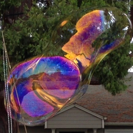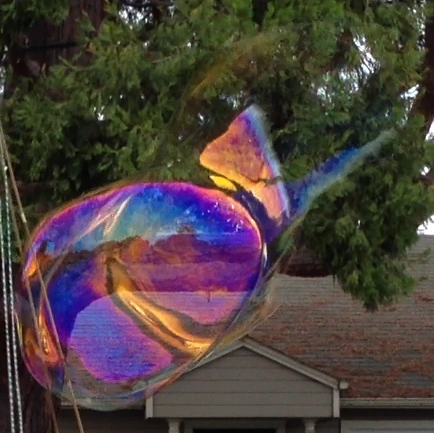 Dawn-based bubble juice has a strong tendency to ghost. When temperatures are cool (below 60F), the results can be fairly spectacular gauzy ghosts that seem to move in ultra slow-mo. The stills below are from a guar-based bubble juice at 47F.