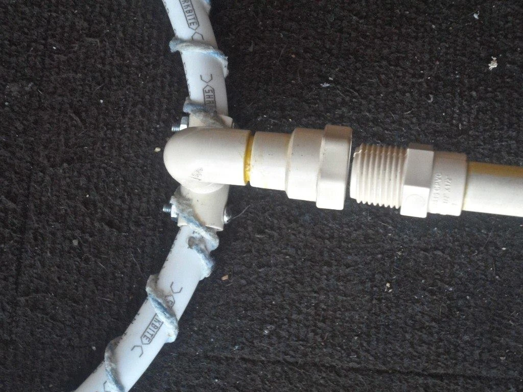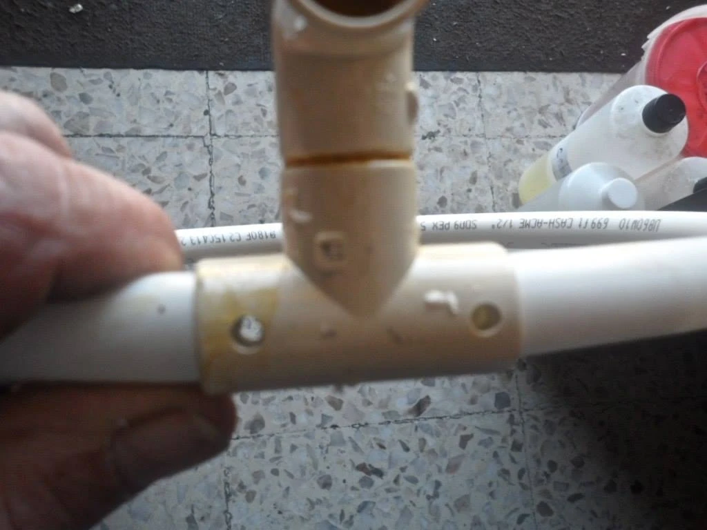 To attach the "T" fitting permanently to the tubing I drill 5/32" holes all the way thru as shown.....