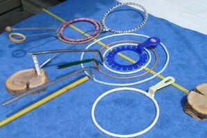 Rigid hoops are great fun. It is easy to make your own using coat hangers or aluminum rod. This page is in progress. Hopefully, while we look for the time to expand it you will find this information useful.