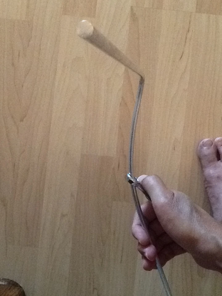 This method uses a closed-end wrench (or the handle of crescent wrench that has a cutout in its handle) and length of aluminum rod.