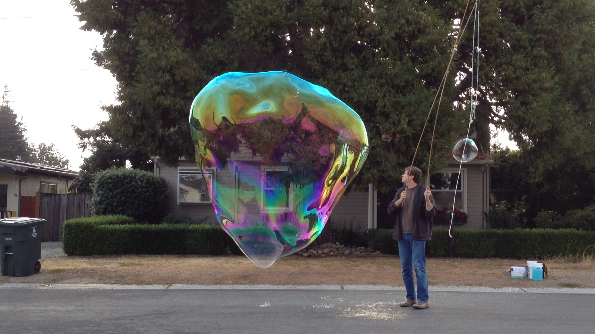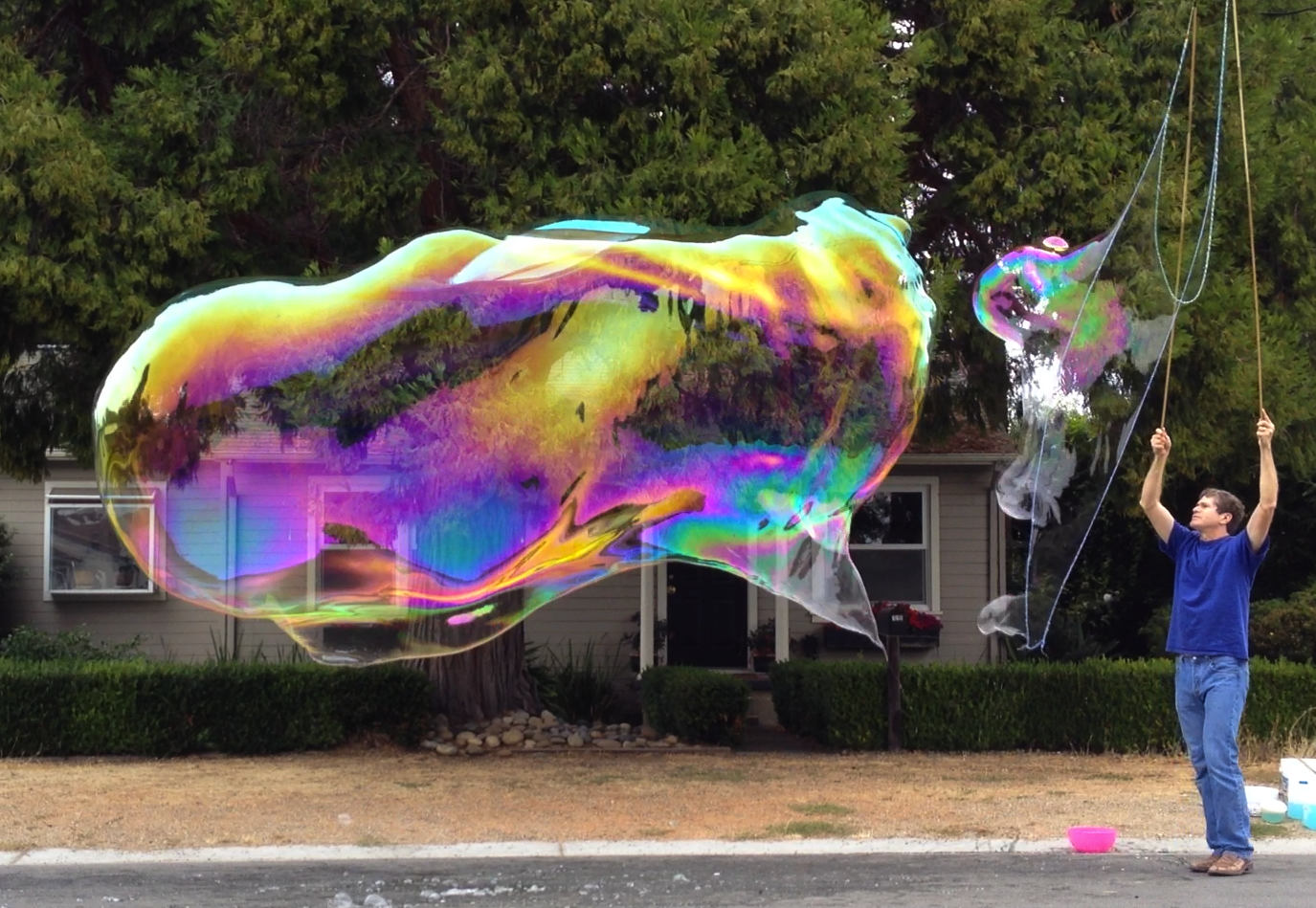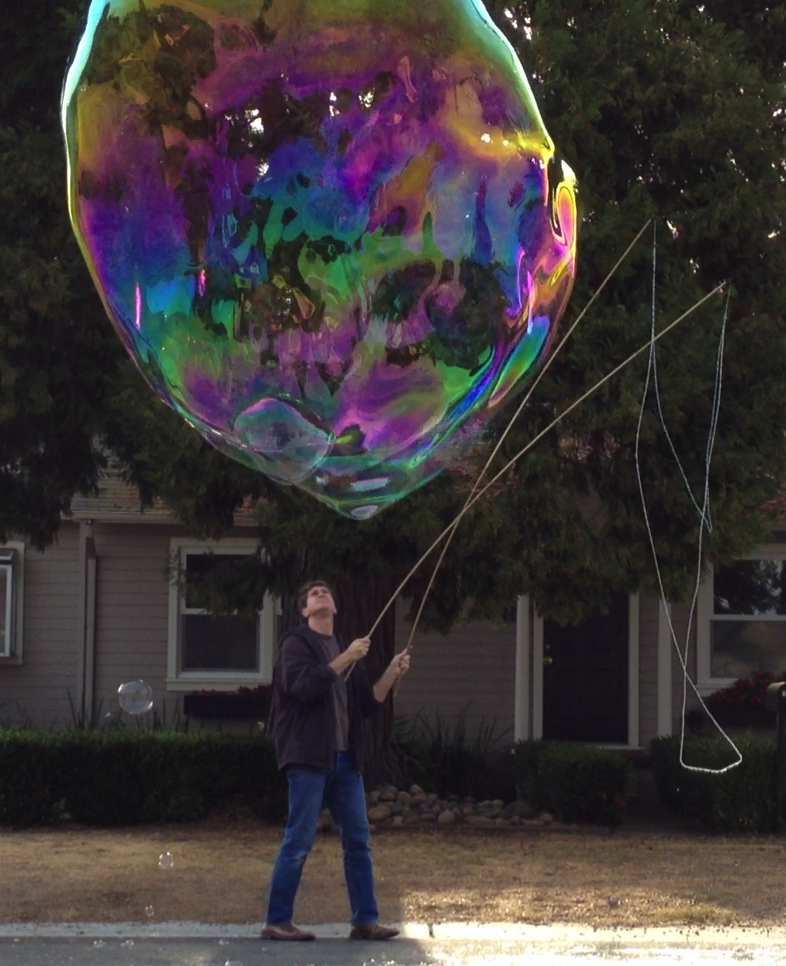This version is intended to be ridiculously thick to see if the extra viscosity is beneficial for making giant tubes and bubbles with the 100" top string. The exploration of slow flowing solutions is to see if this quality of the Bangwool solution that created such large bubbles is generally useful. It is quite possible that the high viscosity of the Bangwool solution is a side-effect of the chemistry that creates such a nice mix and not the cause. This solution -- given the ridiculously large amounts of polymers -- should also give some insight into the validity of John P's claim on SBF that using HPMC and CMC along with PEO will result in a solution inferior to one that is PEO only.