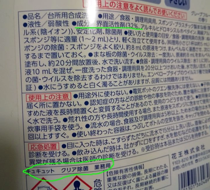 ちょっと気になったのですが、業務用キュキュットをお使いとのことですがどの種類のものでしょうか。業務用の商品だとオレンジかクリア除菌のどちらかだと思います。界面活性剤率は32%ですか、それとも37%ですか。